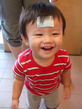 先ほど、保育園から帰ってきました。熱があるらしい・・・ 冷えピタ小さっっ(笑)
