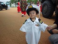 今日は自衛隊が来ていて、制服を貸してくださいました。敬礼