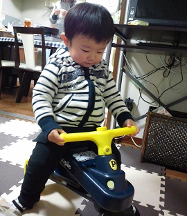 自分の脚で蹴って進む三輪車を置いて行ってくれました