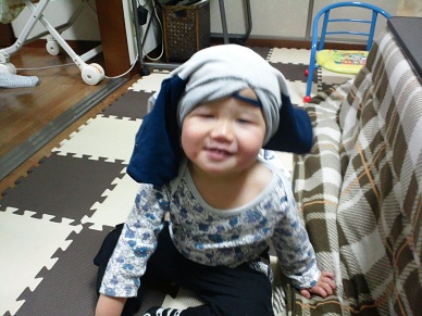 妻が息子の服を脱がせようとしたところ、頭に引っかかって脱げない