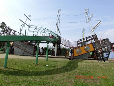 写真ではちょっとわかりにくいですが、かなり広い公園で、無料駐車場もあり、大きな遊具もありました。
