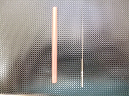 縫い針や注射針と違うのは太さです。私が使用している鍼で太さ0.16mm。