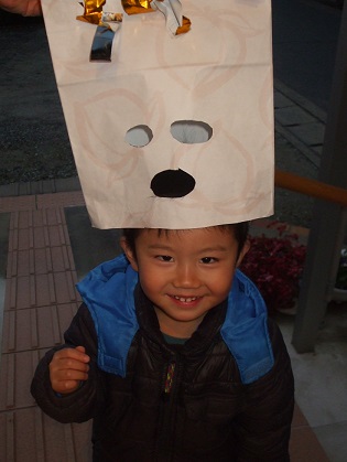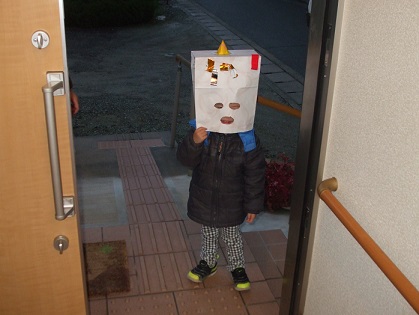 息子でした。今日、保育園で豆まきをしたそうで。