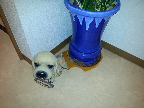 って、この犬は置物です。観葉植物に水をあげたら、下から漏れてきてました。それにしてもこの色・・・まさに下痢です(笑)