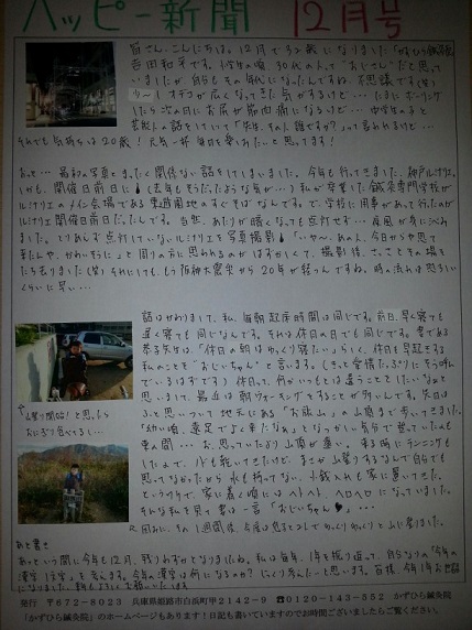今年最後のハッピー新聞、院前に置いていますので、近くにお越しの際にはぜひお持ち帰りください。