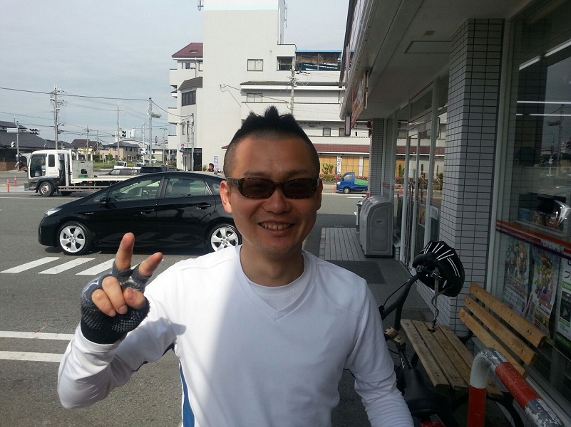 やっとの思いで、赤穂に着いたら、ソフトモヒカンの先がヘルメットのせいで3つに分かれてました。
