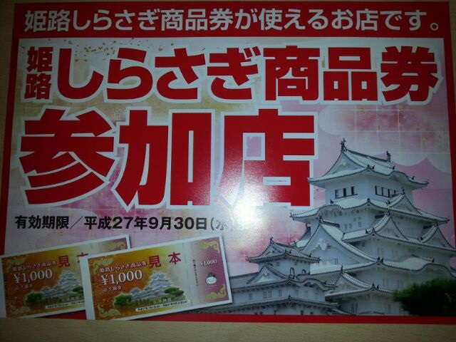 姫路しらさぎ商品券の加盟店への案内が届きました。