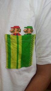 胸ポケットからマリオとるルイージーが覗いています。面白い♪