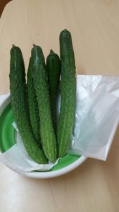 両親が畑で作ったきゅうり。採れる時は一度に採れるらしく・・・院受付に置いている日もありますので、ご自由にお持ち帰りくださいね。