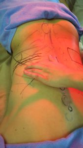 皮膚を触診し、「違和感」を感じた部分にマジックで印をつけます。