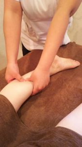 オイルマッサージで脚の筋肉をほぐし、メディカルセルでリンパの流れを改善します。