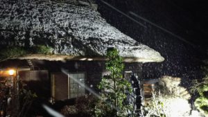 雪降るかなぁと思っていたんですが、現地に着くと、降る気配なし。一安心していたら・・・