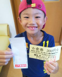 近所のスーパーマーケットの300円買い物券。しかも私が知る限りでも、息子は3~4回ほど当たっている。なんと運のいい奴なんだ!!