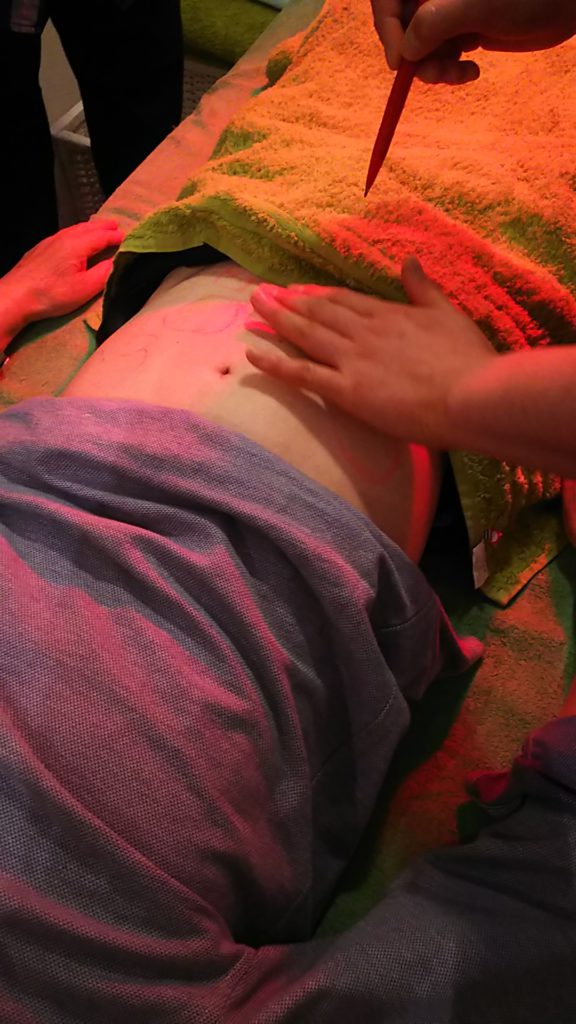 昨日のテーマは、「腰痛」でしたので、主に下腹部・側腹部の触診・刺鍼を中心とした実技練習が行われました。