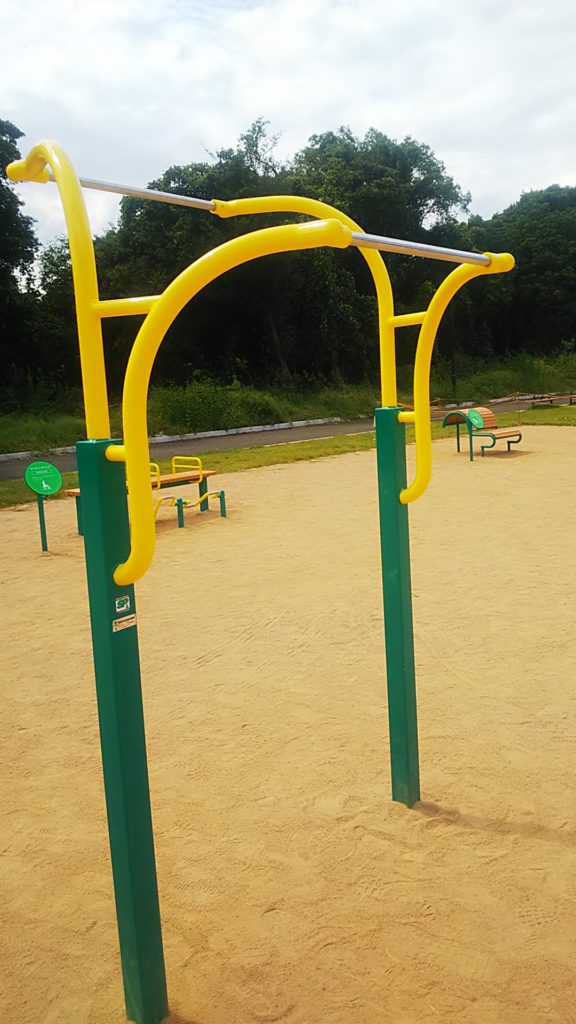 これです!懸垂バー?鉄棒?これで懸垂をしています。懸垂は、背中の筋肉を鍛えられますが、バーの持ち方によって二の腕に効かせることもできます。そして、意外と腹筋も鍛えられるという優れものです。しかし、懸垂をしていると、小さな子供がじ~っと見てきます。「おっちゃん、何してんの?」と言いたそうな顔で・・・おっちゃんはね、かっこいいお兄ちゃんになるために頑張っているんだよ 笑