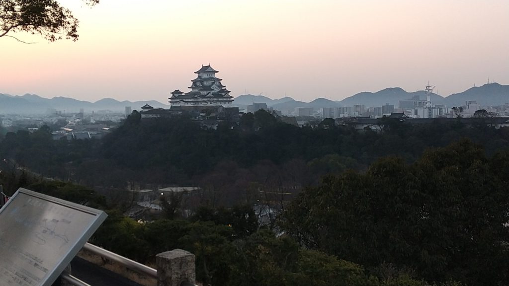 階段を登ったところから見る姫路城&朝日は、感動するくらい美しいです。三脚を立てて写真撮影されている方が数名いらっしゃいました。