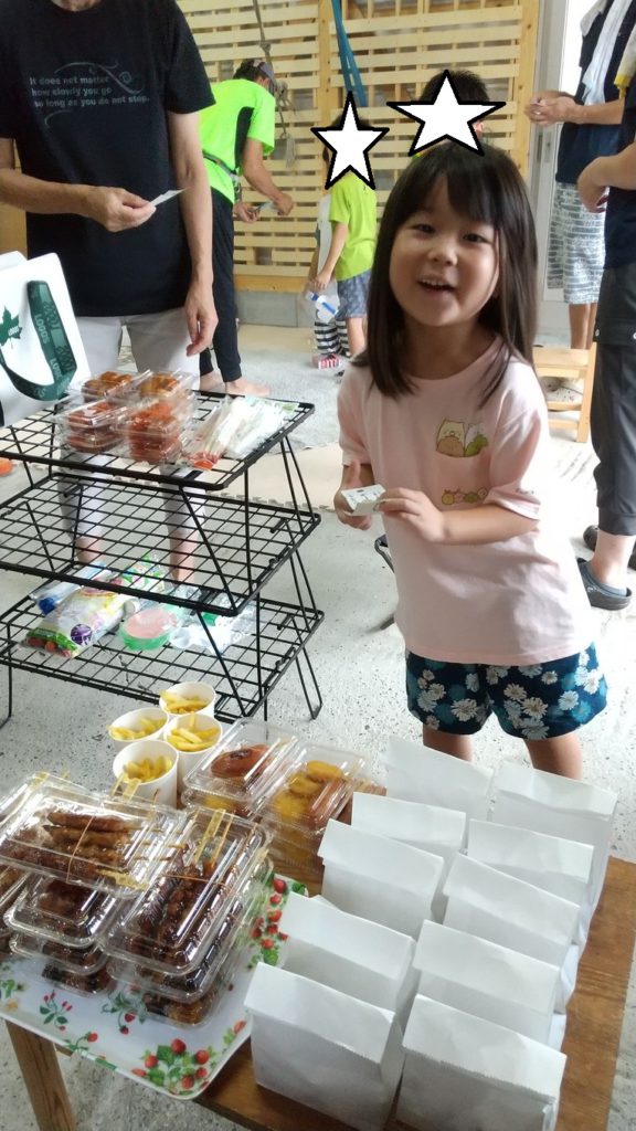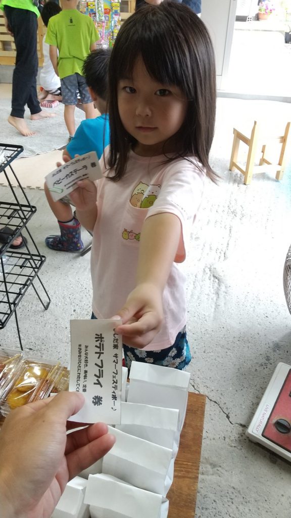 全部手作りの夏祭り、いやぁ、楽しかったです。大人もちゃんとチケットをもって並びましたよ~。