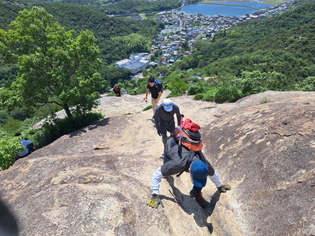 この山、標高300mほどの低山で、ガイドなんかには初級と表記されているんですけど、登り始めからわりと急な坂道があったり、岩山で滑りやすかったり、日影が少なかったりと「これで初級か・・・」と疑いたくなる山なんです。その分、稜線がきれいに見えたり、標高のわりに絶景だったりと、素敵な場所なんですよね。