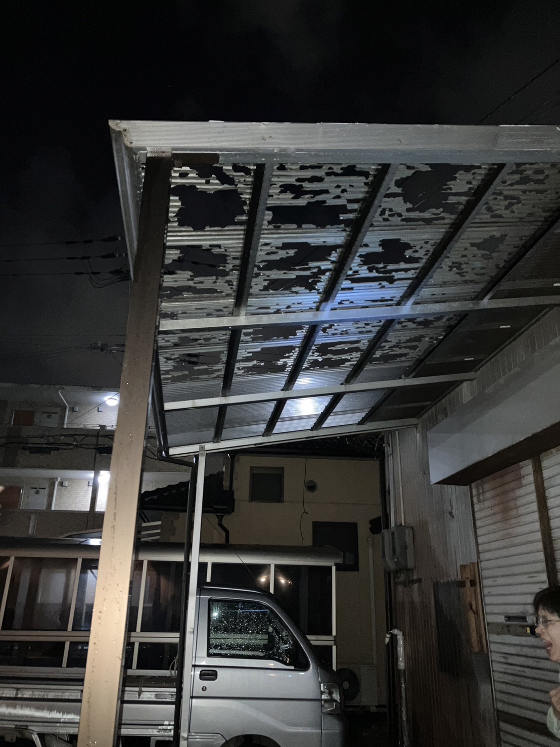父がガラス店をしていた工場の波板が雹が降ってボロボロになりました。父曰はく、古いし素材も弱いからそりゃこうなるやろみたいな感じで、それにしてもすごいことになるもんだなぁと家族で笑っていたんですが・・・