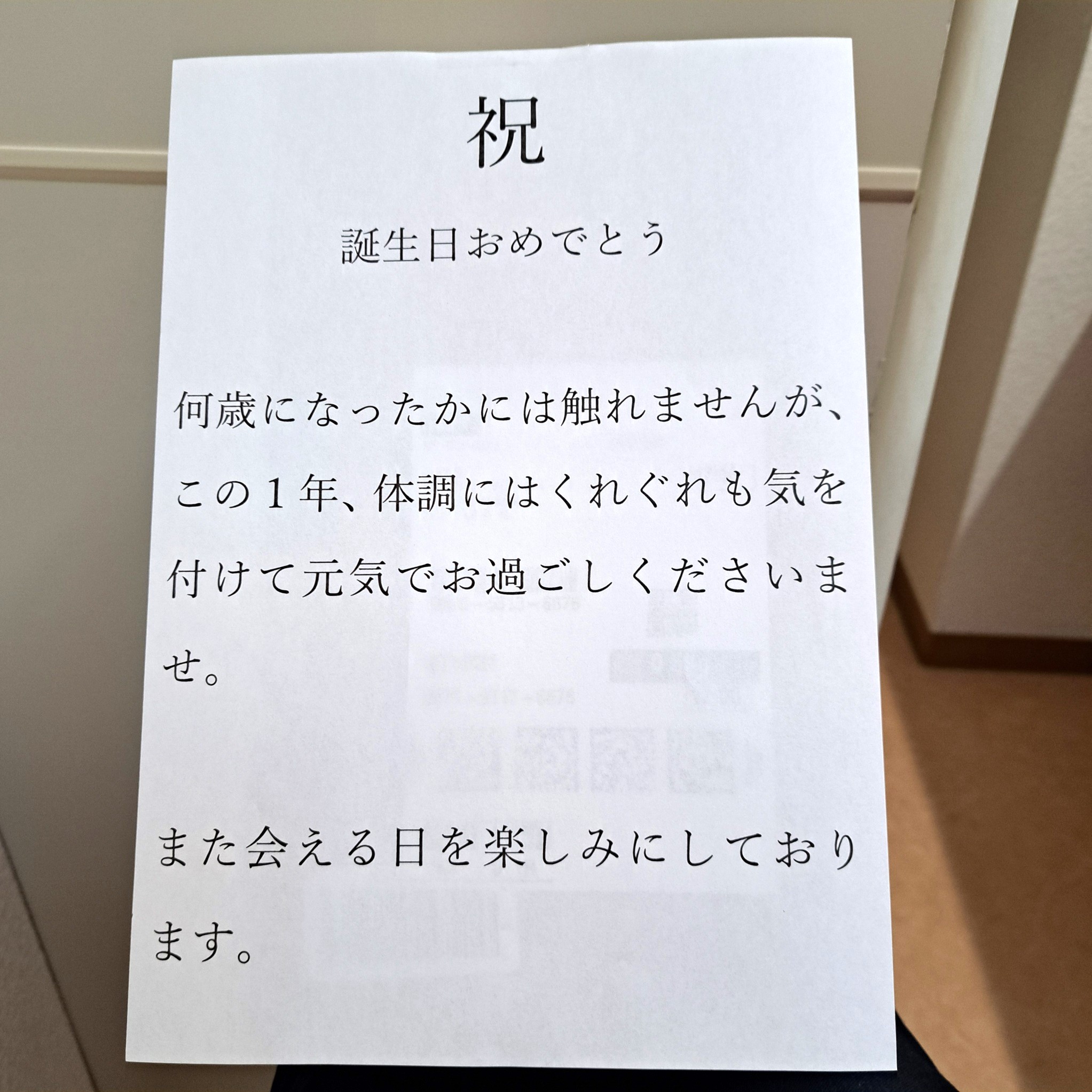 ちゃんと?手紙もつけました。「また会える日を楽しみにしております」って、毎日顔あわせてますやん!というツッコミを期待していましたが、ダダ滑りました・・・プレゼントを用意した私に息子(中3)が「お父さんでもそういうことするんや!?」と言ってきたんですが、「お父さんでも」の「でも」がとんでもなく気になります。